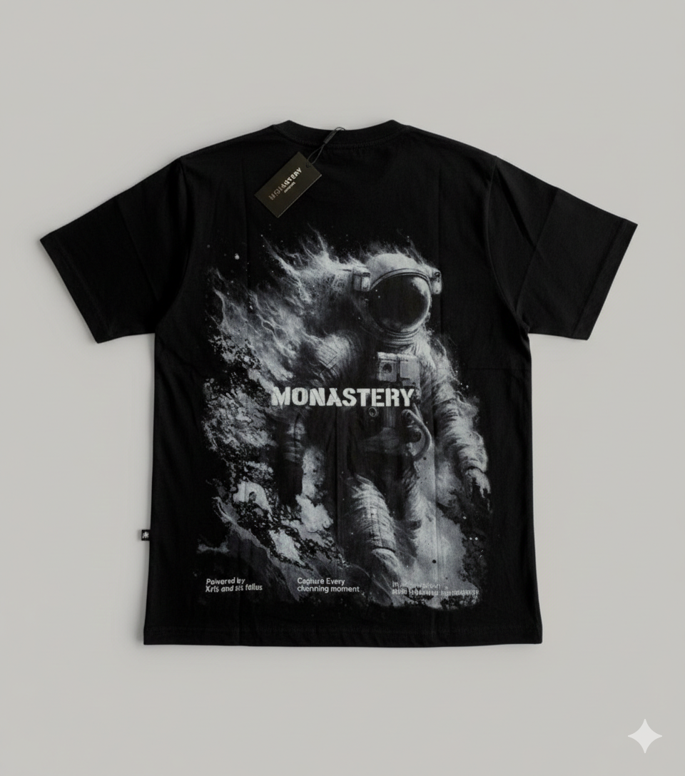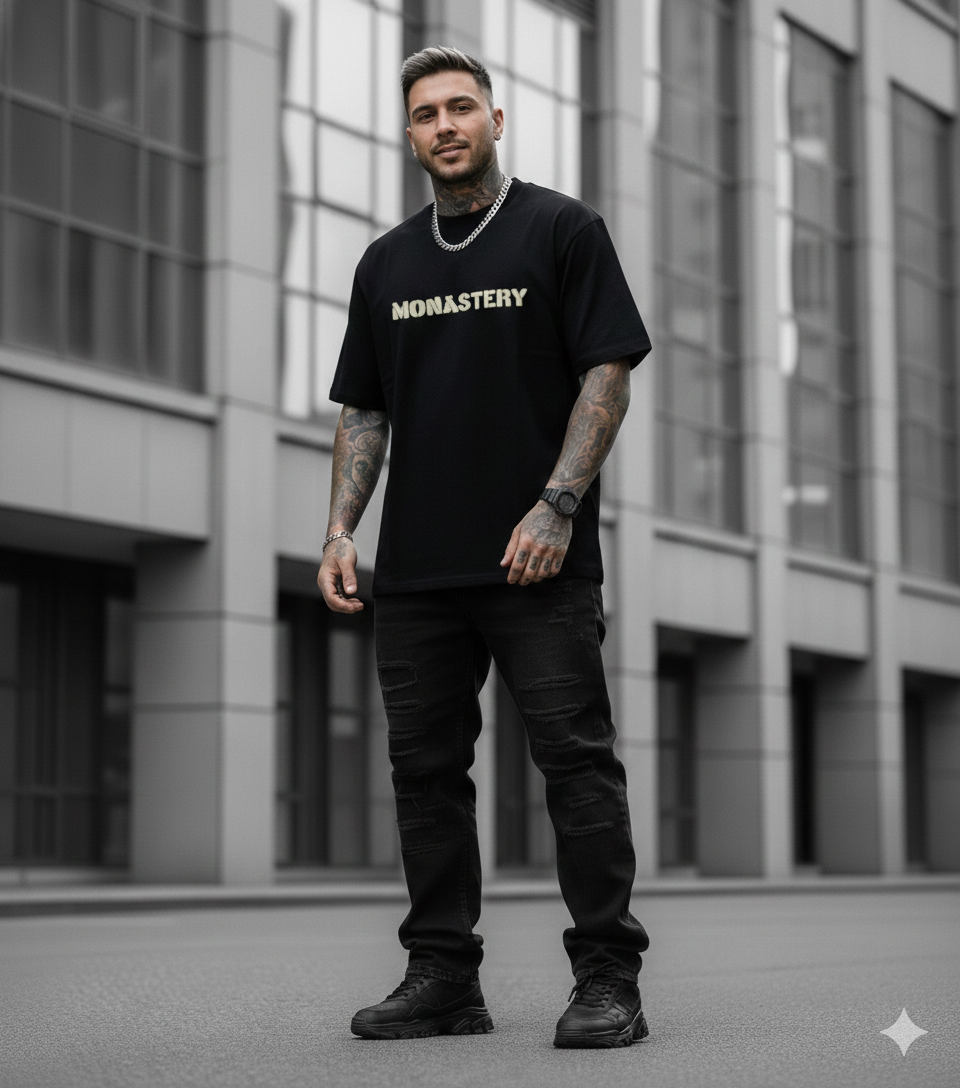Camiseta Monastery, esencial contemporáneo. Algodón premium, corte regular y detalle del logo en contraste. Estampado trasero en alta densidad para un minimalismo con carácter. Para quien busca distinción en lo inesperado.