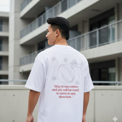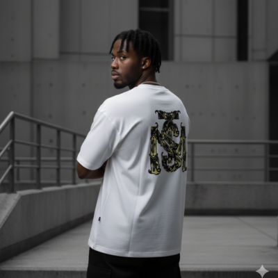 En la espalda, estampado en alta densidad que añade textura visual y profundidad, manteniendo un equilibrio entre minimalismo y sofisticación.