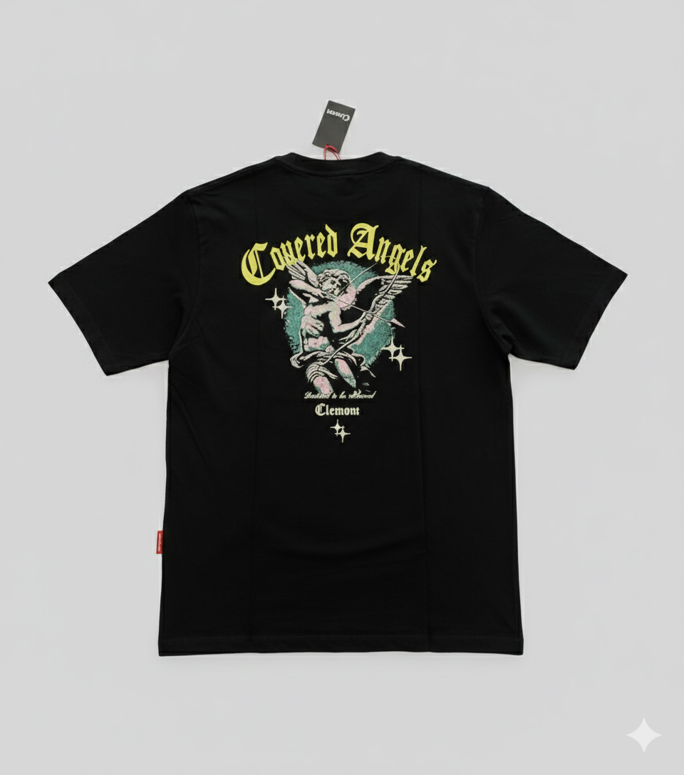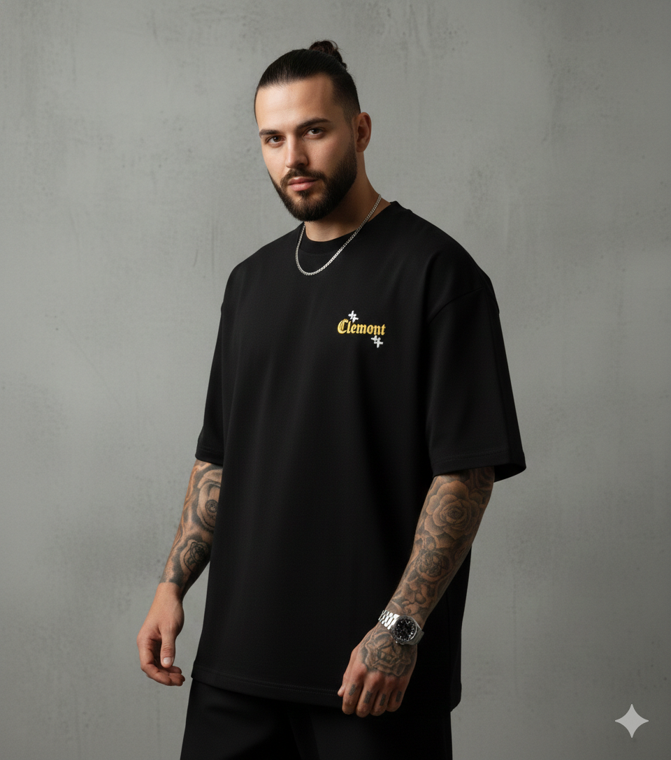 Camiseta Clemont, esencial contemporáneo. Algodón premium, corte regular y detalle del logo en contraste. Estampado trasero en alta densidad para un minimalismo con carácter. Para quien busca distinción en lo inesperado.
