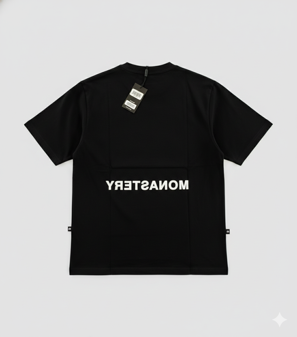 Camiseta Monastery, esencial contemporáneo. Algodón premium, corte regular y detalle del logo en contraste. Estampado trasero en alta densidad para un minimalismo con carácter. Para quien busca distinción en lo inesperado.