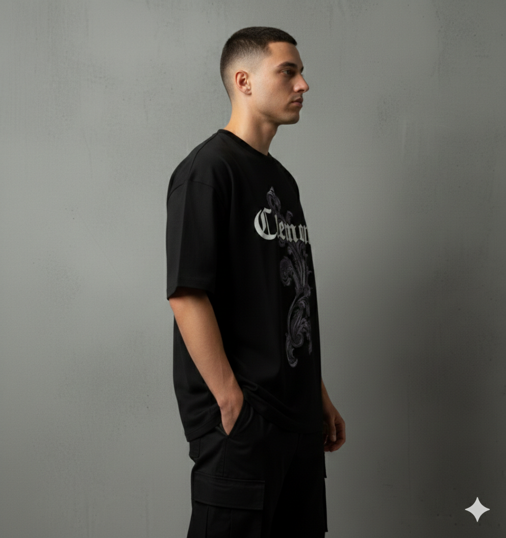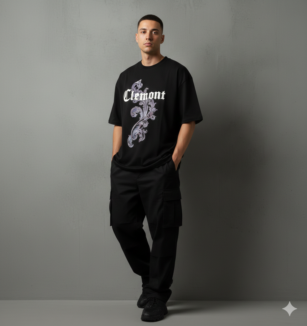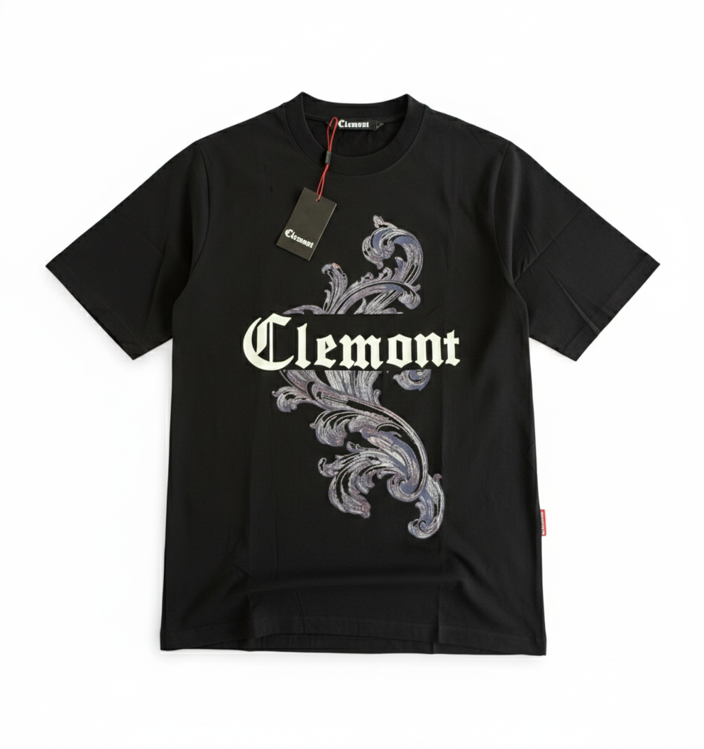 Camiseta Clemont, esencial contemporáneo. Algodón premium, corte regular y detalle del logo en contraste. Estampado trasero en alta densidad para un minimalismo con carácter. Para quien busca distinción en lo inesperado.