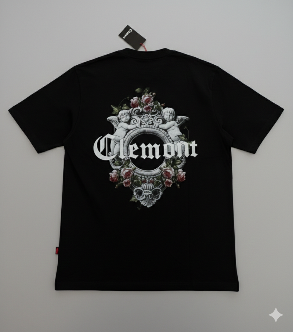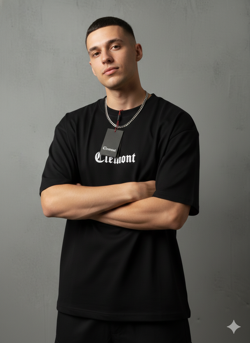 Camiseta Clemont, esencial contemporáneo. Algodón premium, corte regular y detalle del logo en contraste. Estampado trasero en alta densidad para un minimalismo con carácter. Para quien busca distinción en lo inesperado.