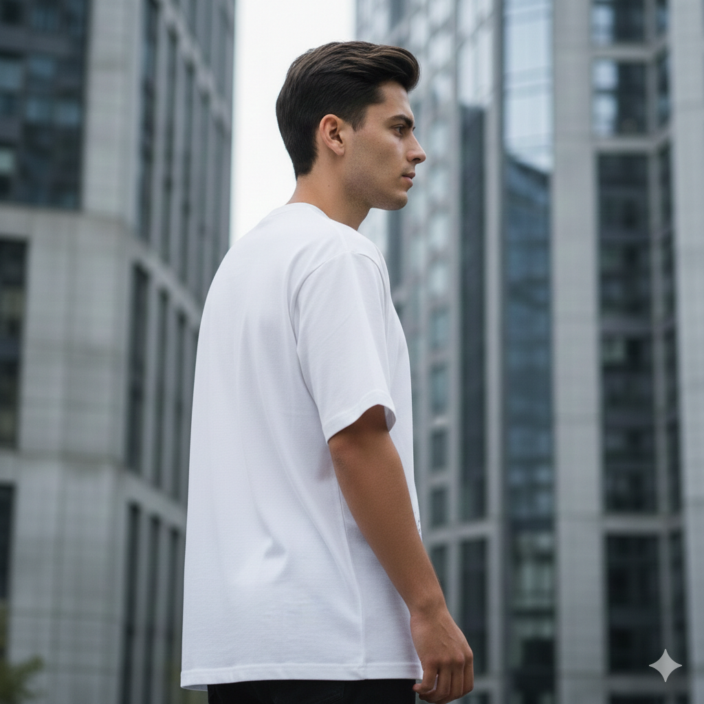 Una prenda que redefine lo esencial con un gesto contemporáneo. Esta camiseta masculina está confeccionada en algodón de alta calidad, ofreciendo una sensación premium y un ajuste estructurado pensado para perdurar.